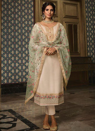 Floor-Length Straight Suit: This suit features an extended straight kameez that drapes effortlessly to the floor as its name implies, adding an air of luxury with exquisite embroidery or other decorations.